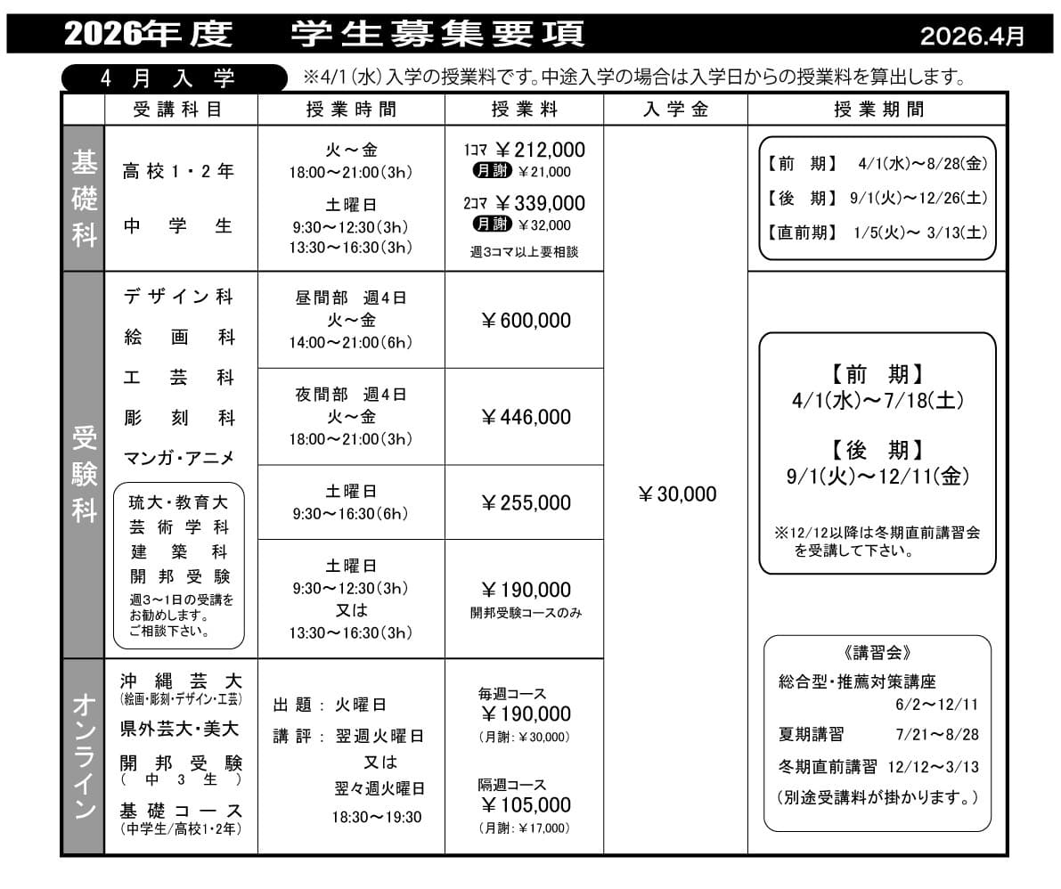 受験科・基礎科紹介/年間スケジュール/講習会案内等