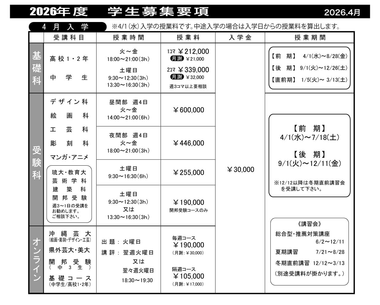 | ・基礎科に限り、月謝支払又は年学費一括払いを選択できます。 |